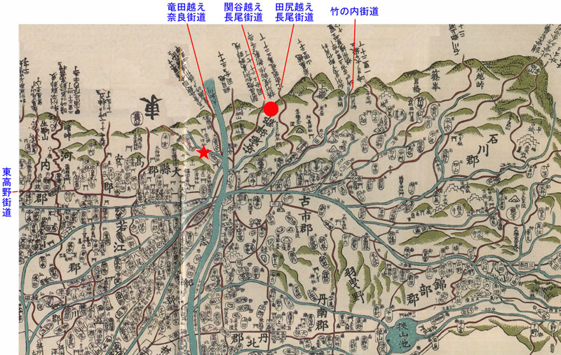 大阪〜奈良を結び生駒山を南に迂回する道。古代には大和川の北