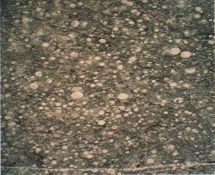 チャートは非常に細粒の石英(SiO2)からなる岩石で、その多くは、砂