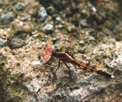 北海道北端から琉球列島まで分布する普通の種で、平地や丘陵、低山地の池沼・湿地・水田に発生する。成虫期は4〜10月で、体長は50〜55mm。写真は雌個体で、いわゆるムギワラトンボ。雄ははじめ雌と同様に麦藁色だが、成熟するにつれて黒化し、白粉でおおわれる。まれに雌でもそうなる個体がある。