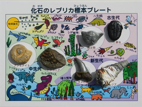「地質紙芝居と化石レプリカ標本プレート」