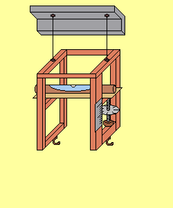次にわくの下端に適当な補助錘(18番線で約2kgずつ)を加えて、