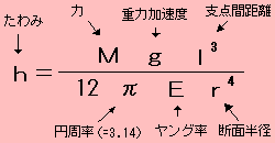 - 円形断面の場合、ヤング率は右の式によって求められるので、この結果を代入すると、