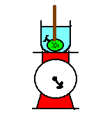 3. メロンを棒で押し,水に沈めてW2を読み取る。・・水,容器,メロンと同体積の水の重さ