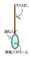 この発砲スチロールに先をやや鋭くしたわりばしをさしこみ,このまわりに