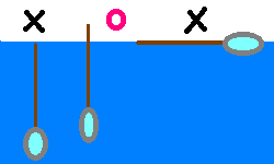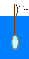 調節して,左図のようになったら水面を中心に目盛りを5cm間隔