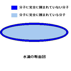 ここでの『分子によって完全に囲まれていない分子』とは右図のしている分子のことである。そこで「なぜその分子をできるだけ少なくしようとしているの?」という疑問が出てくるのでそれを次に説明します。