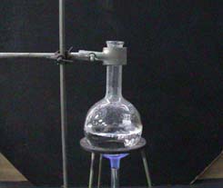 | 1.丸底フラスコに水を入れて、ガスバーナーで沸とうさせる。 |