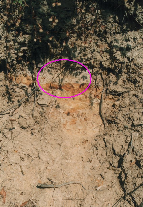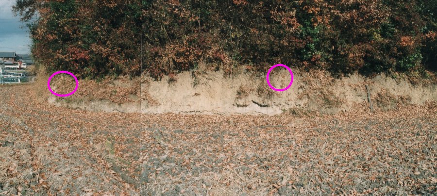 褐色であることから、ピンク火山灰に残るのかすかな色を