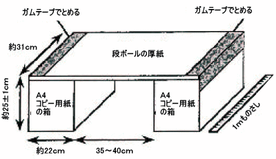 * 段ボール厚紙が弱い場合は、板などで補強しても良い