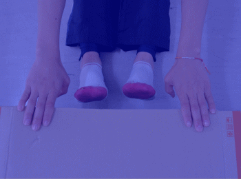 被測定者は、両手を厚紙から離さずにゆっくりと前屈して、箱全体をまっすぐ前方にできるだけ遠くまで滑らせる。この時、膝が曲がらないように注意する。最大に前屈した後に厚紙から手を離す。 |