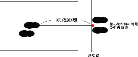 (2)両足で同時に踏みきって前方へ跳ぶ。