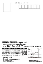 10月17-19日 24-26日、gallery 176(大阪府豊中市)で本コース修了生の城野知佐さんの写真展「城野知佐 写真展 in a pocket」が開催されています。ぜひご来場ください。