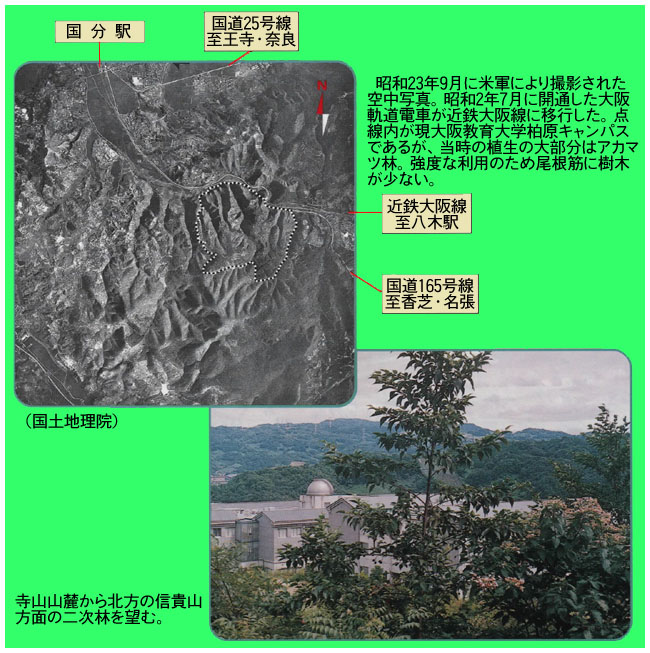 大阪教育大学柏原キャンパスは、二上山地の独立峰寺山(標高294m)の北側
