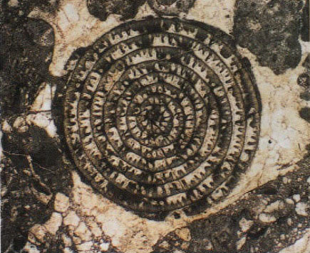 フズリナ(紡錘虫)、二枚貝などの石灰質の殻を持つ生物を起源とする