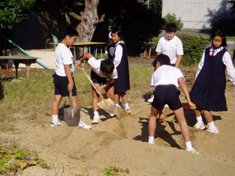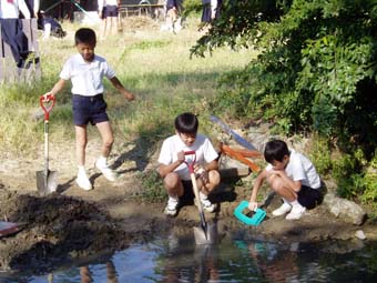 LIFEプロジェクトでは、池の生き物が附小池に棲みやすいように、池に関わる活動もしました。 |