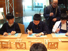 大阪欄間、西陣織、介護の仕事、京くみひも、小型製品組み立て、印刷の仕事、…など、多くの体験コーナーがありました。 |