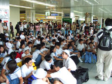 9月7日(水)、修学旅行に行きました。 行き先は、富士山です。 でも、台風14号が来ていて、無事に出発できるのか、 当日の朝まで、ずっと心配し続けていました。 |