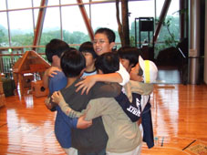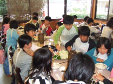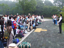 雨が降っていたため、1日目の予定を変更して、 「休暇村富士」に直接向かいました。 ここで、ホールアース自然学校のインストラクターの方と出会いました。 |