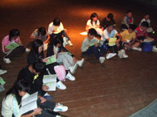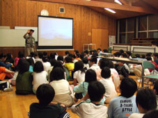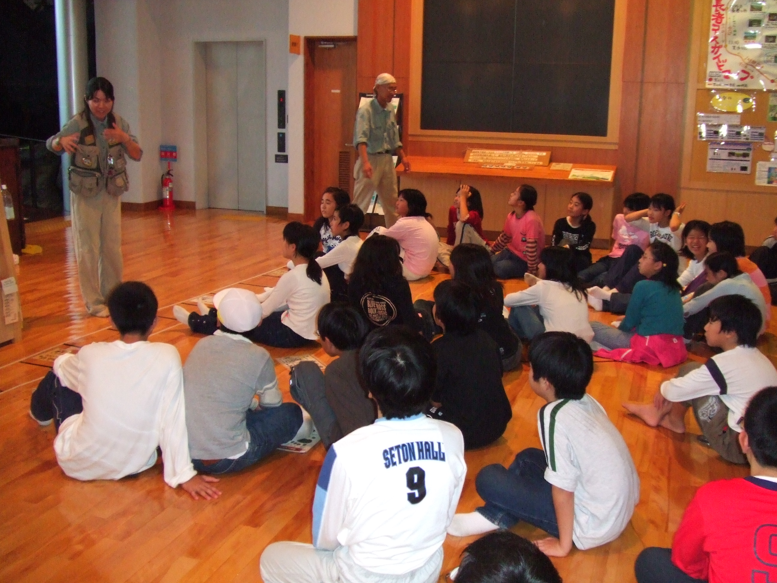 夜は、ネイチャートークです。 富士山の自然について、ハラエモンさんに教えてもらいました。 |