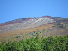 富士山新五合目から見た頂上です。 雲一つありません。 富士山の頂上って白色だと思っていたのに、赤や灰色だということに驚きました。 |