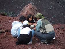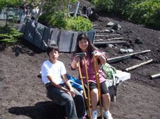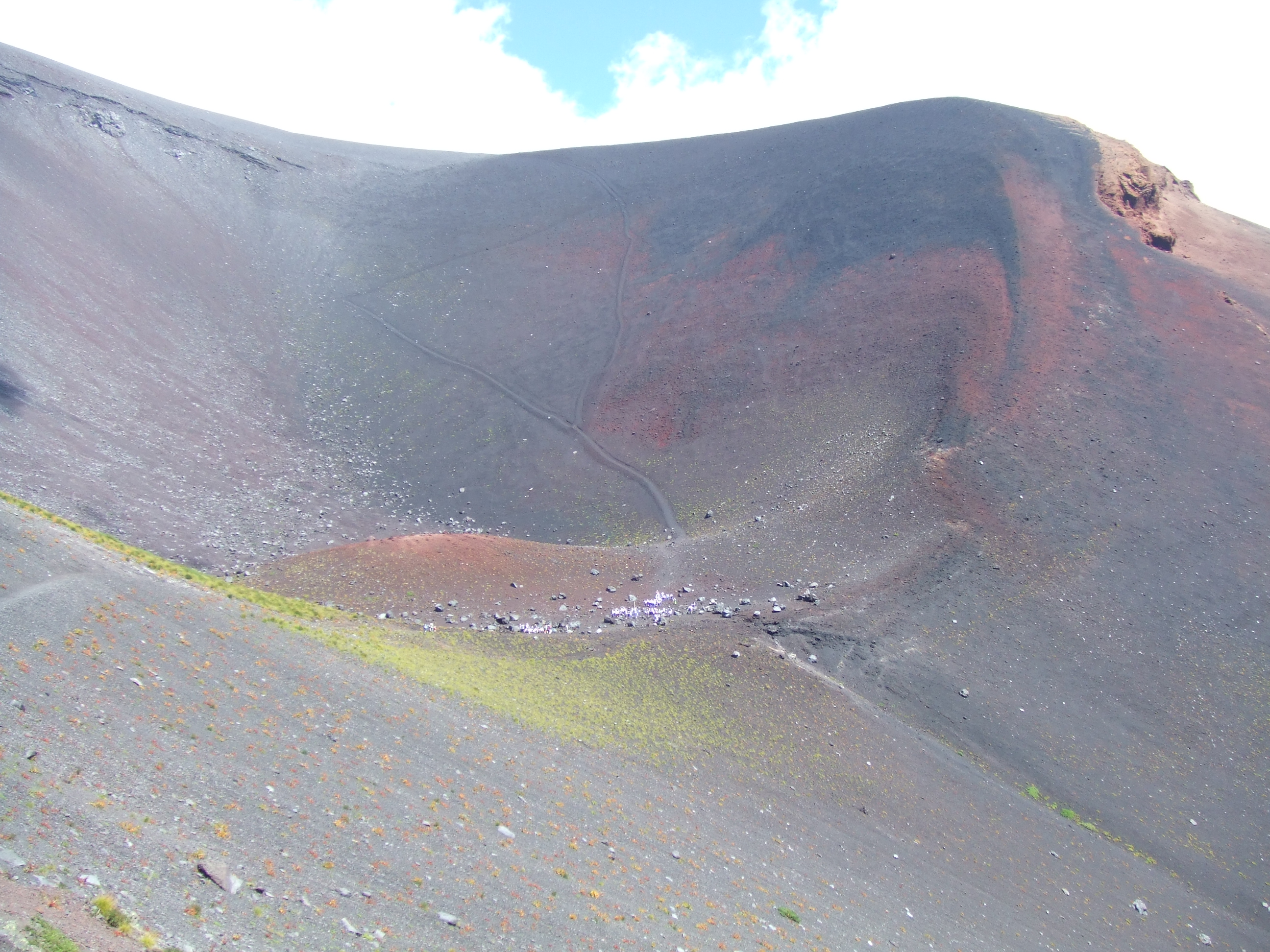 ここは、宝永火口の中です。 ここで、つい何百年か前に噴火があったかと思うと、何となく不思議な気になります。 |