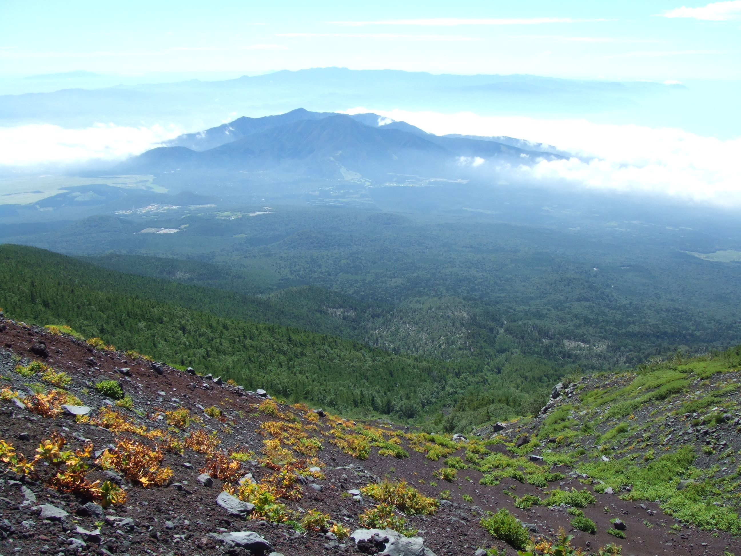 富士山新五合目からは、こんな景色が見えました。 雲が下に見えます。 |
