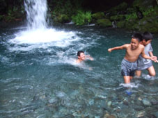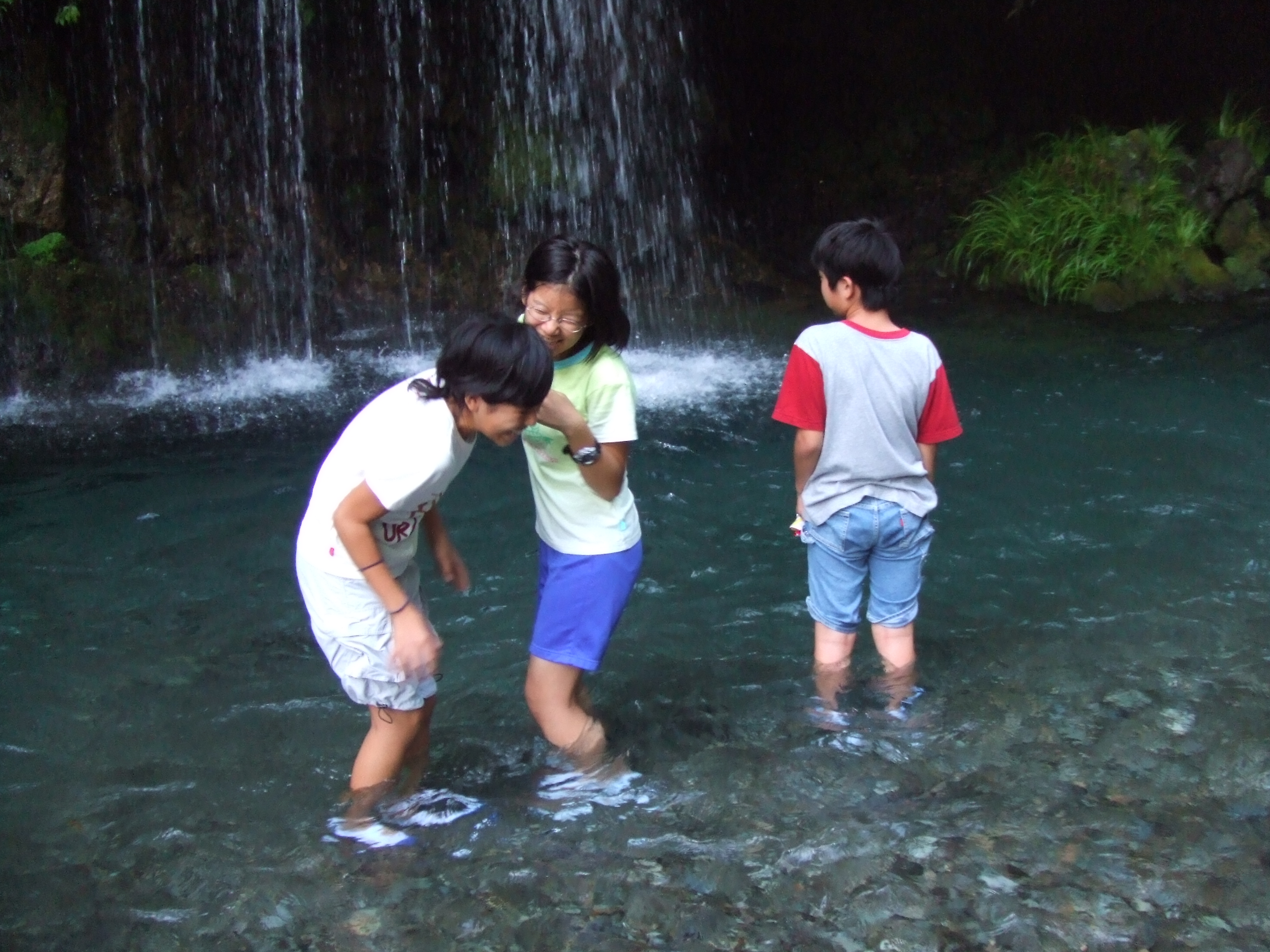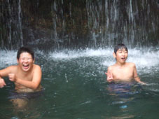 滝に行きました。 あまりに水が冷たすぎて、10秒つかるのがやっとです。 |