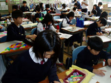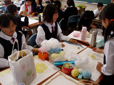 毛糸やビーズ、スパンコールなどを使って、思い思いに表しました。