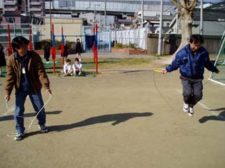 | 音楽に合わせて跳ぶのも楽しいね | 8の字まわしで、ちょっと休憩してから |