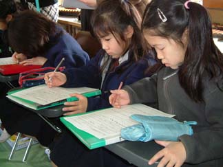 | 子どもたちのこの真剣な顔 | 楽しそうな鑑賞の態度。あとの討議会でもほめてくださいましたよ。 |