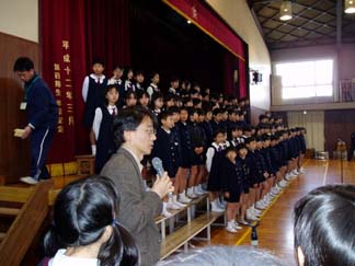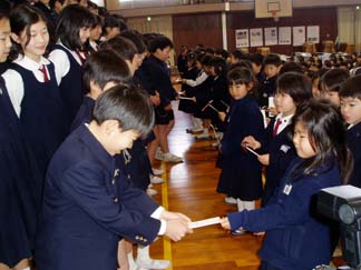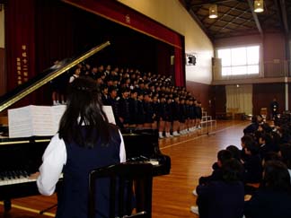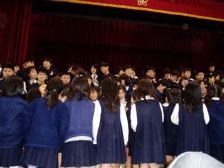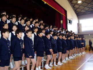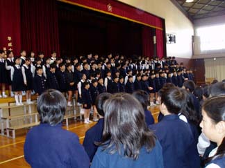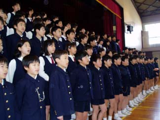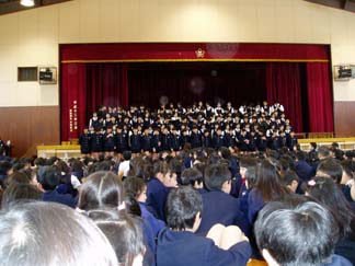 | ふくろの中身はなんでしょうね。楽しみ…。 | 最後に卒業生の歌声で式はおわります。 |