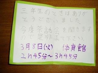 | 3年生の前も通ってくれました。この身長の差はすごいですね。 | 私は放課後「茶話会」に招待されました。 |