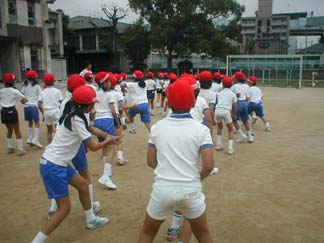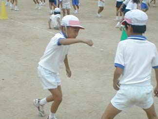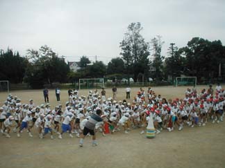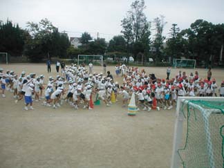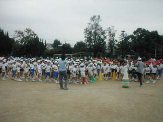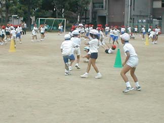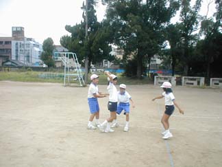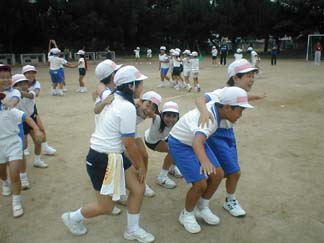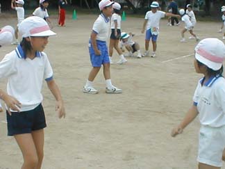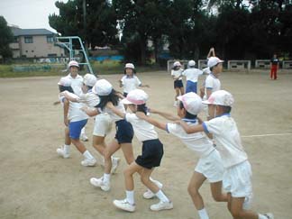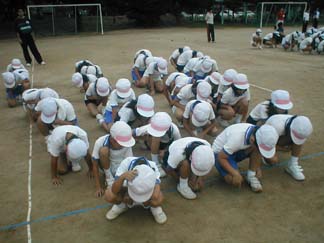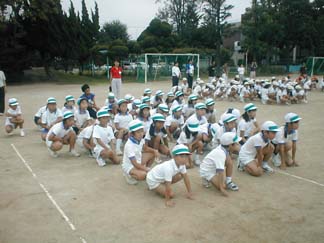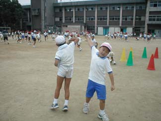 | 初めて、運動場でやってみましょう | 今日も、がんばるぞ! |