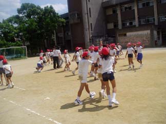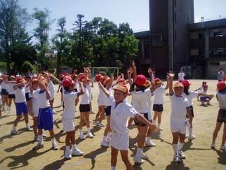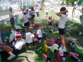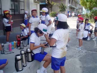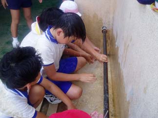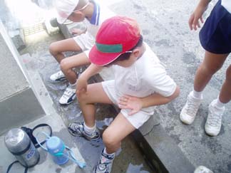 | 休み時間です。おもわず水をかぶる子 | 足を水につけてる子 |