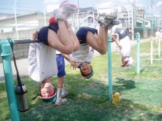 | 日かげでたたずむ子 | それでも鉄棒の練習をする子… |