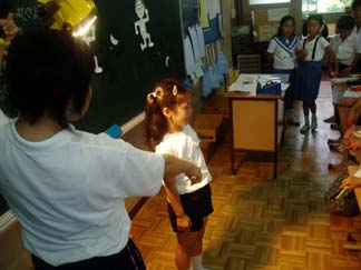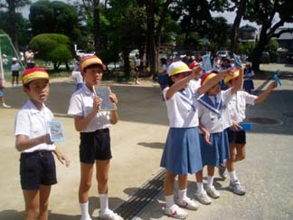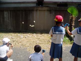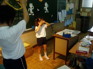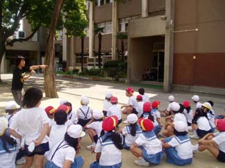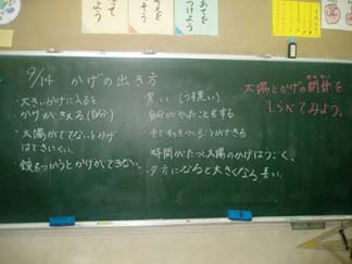| 太陽が先生の頭の上だとすると? | ほらほら、かげがあっちにできてるね!! |