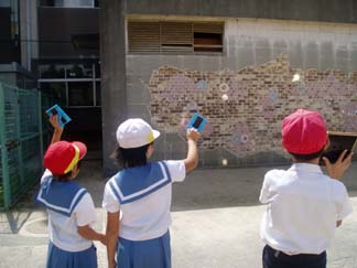 | ほら、こんな風に太陽が反射して壁にうつってるよね。。 | うわーーほんとだーー |