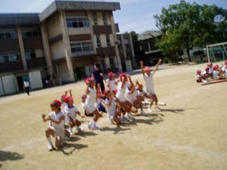 | 朝礼台の上から、最後の決めポーズ | どうだ!! |