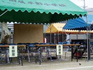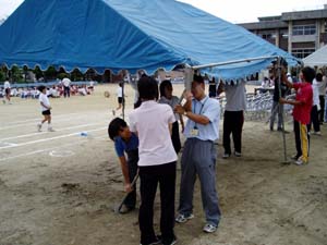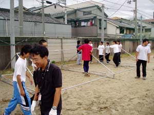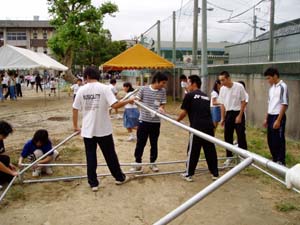 | だんだんと本部まわりが完成していきます。 | 実習生も八面六臂の活躍です。 |