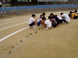 運動会の準備です。 3年生は帰ったけれど、保護者の方、実習生、教師みんなの力で準備をしました。