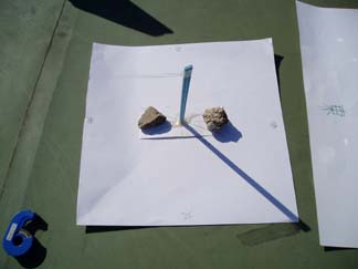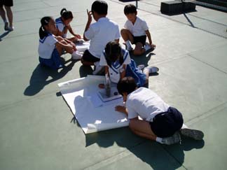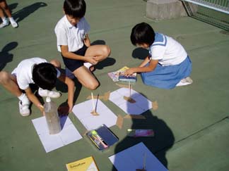 待ちかねた、「かげの動きと太陽」の実験を