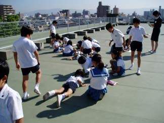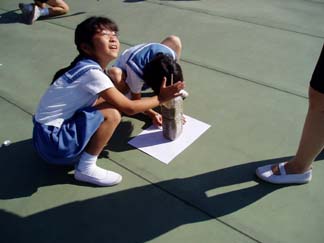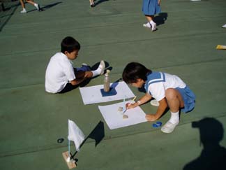 だから、屋上の地面にかいている子がいました。