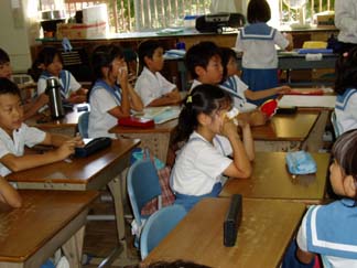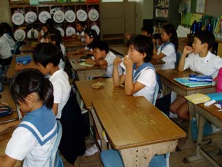 お別れの最中に他のクラスに入っていくのも気が引けて、自分のクラスでも写真を撮ることに気がひけましたが、こんなに感動的な別れを子ども達が経験していることをお知らせしたくてシャッターをきりました。今回は3組だけの映像ですが、各クラスで感動の別れがあったようです。 (ホームページの管理人より)