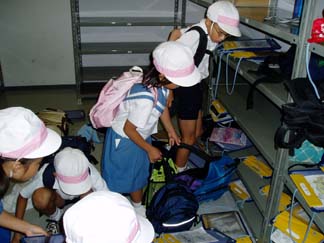 ←これは、うちの学校のたなです たしかに、本校は、お弁当を食べるのに荷物の出し入れを見学のとちゅうでしないといけませんでした。 でも、この状態はあんまりではないでしょうか。 自分の荷物さえ、とればそれでいいのでしょうか。? 「先生わたしのえんぴつがなくなりました」って何人もあとで言ってきます。しかしこれではなくなっても当たり前状態です。 |