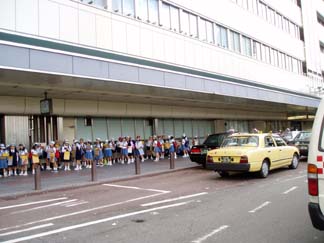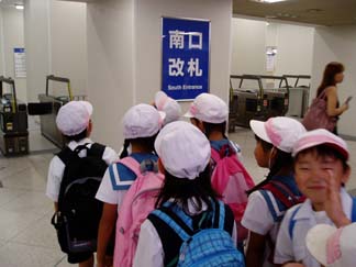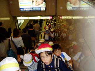 地下鉄天王寺から地上へ、、階段もきちんとならんで…