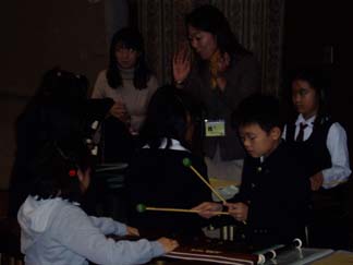 | 続いてはエビーバ友だち | そして、合奏曲「わらべうたアンサンブル」はパートに分かれてそれぞれのパートに対して保護者のみなさまも支援して頂きました |