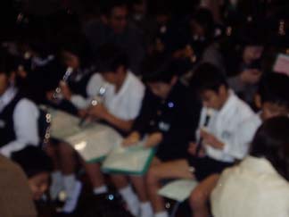 | 拍をとる手に合わせてパーカッション隊 | ピンぼけ写真になってますが、演奏はぼけてませんよ。(^。^) |