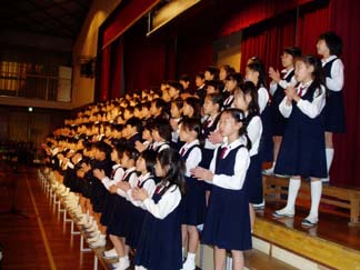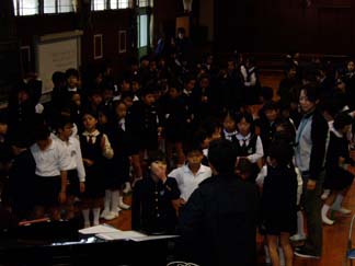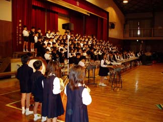 | 入場を待つ子ども達 | さあ、ステージへ登壇します |