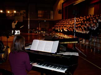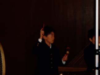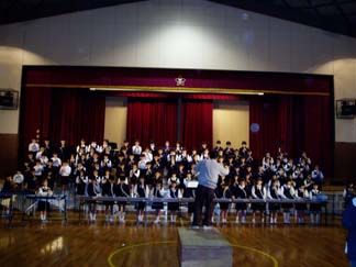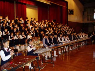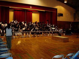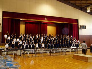 | 次は合奏。このウッドブロックの音から始まるのです。だから緊張するでしょうね。 | 総勢119名の大合奏です。 |