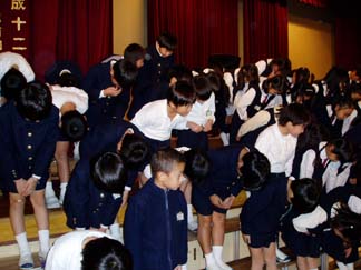 | うまく 並ぶことができましたね | 礼のれんしゅう。おやちょっとばらばら?? |